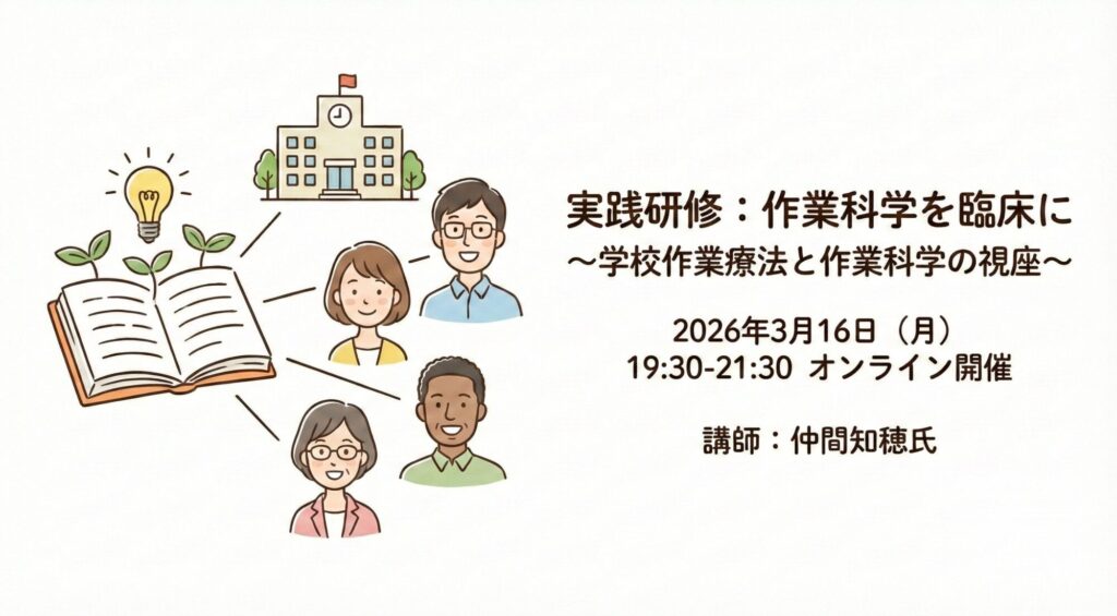 日本作業科学学会では、実践研修「作業科学を臨床に ~学校作業療法と作業科学の視座~」を開催いたします。